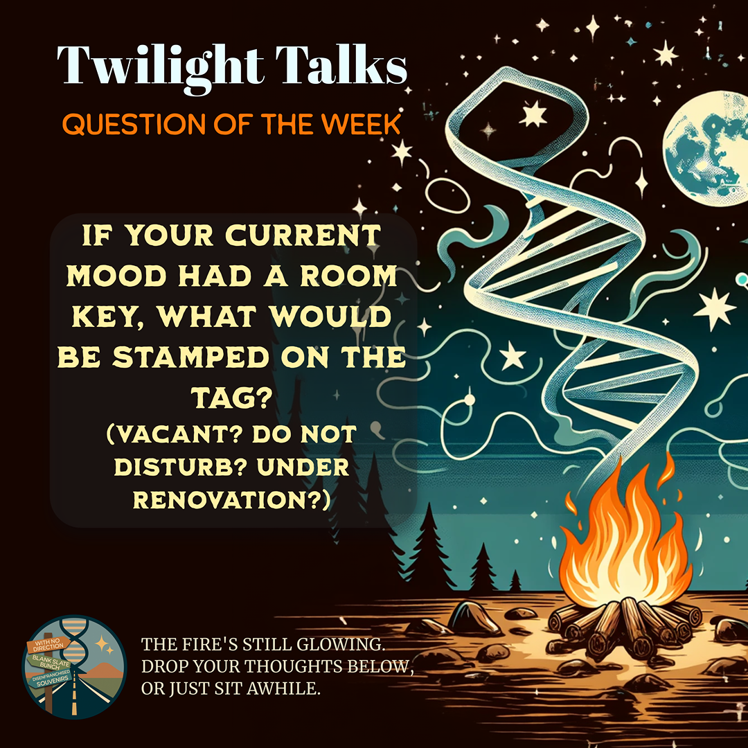 Welcome to the back lot of With No Direction — the campfire circle. This isn’t the lobby, and it sure isn’t Kumbaya. The Blank Slate Bunch Campfire is where we gather after hours, drag out the folding chairs, and speak the truths that don’t fit on postcards.