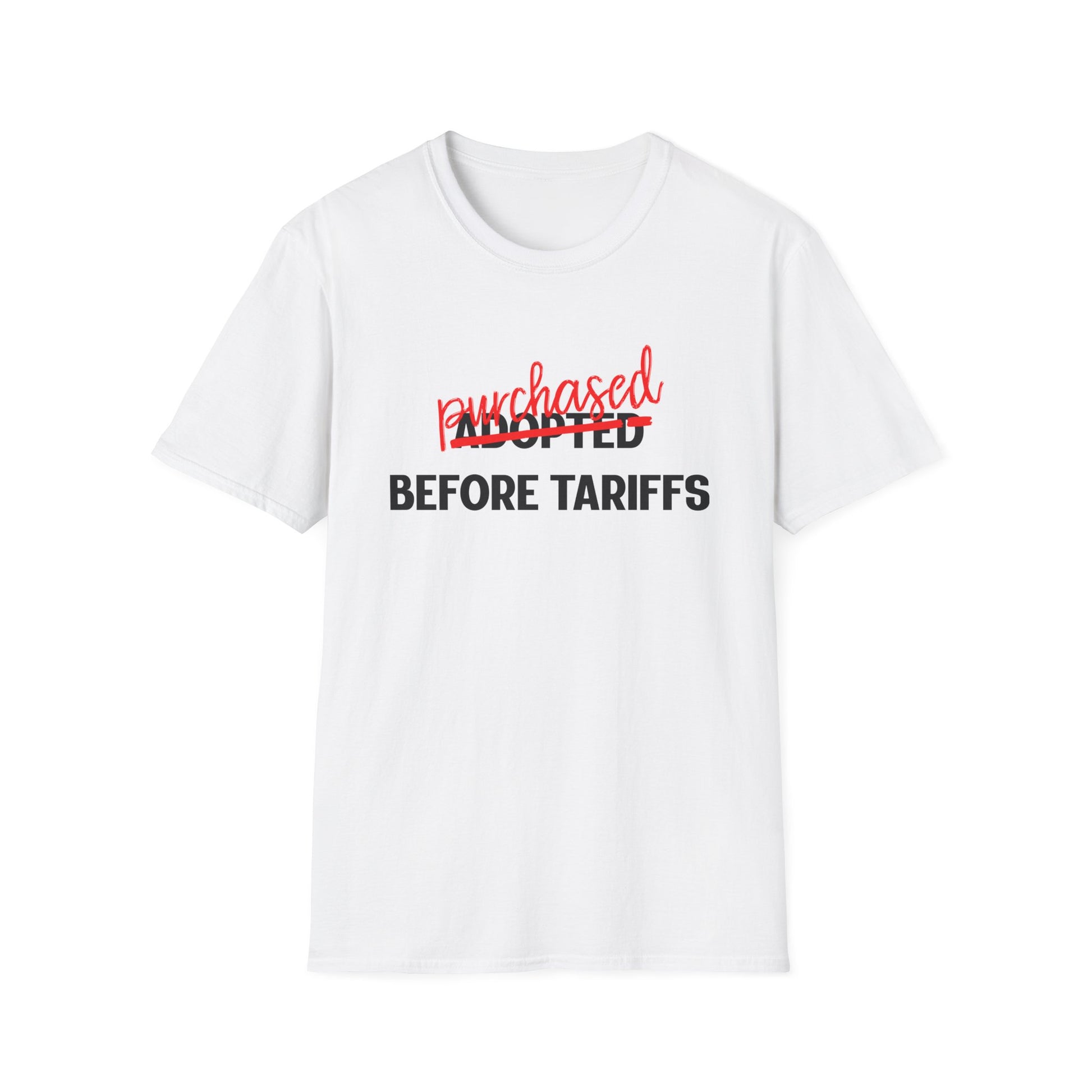 Adopted Before Tariffs Unisex T-Shirt – Adoptee Snark, Political Humor, Adoption Commentary