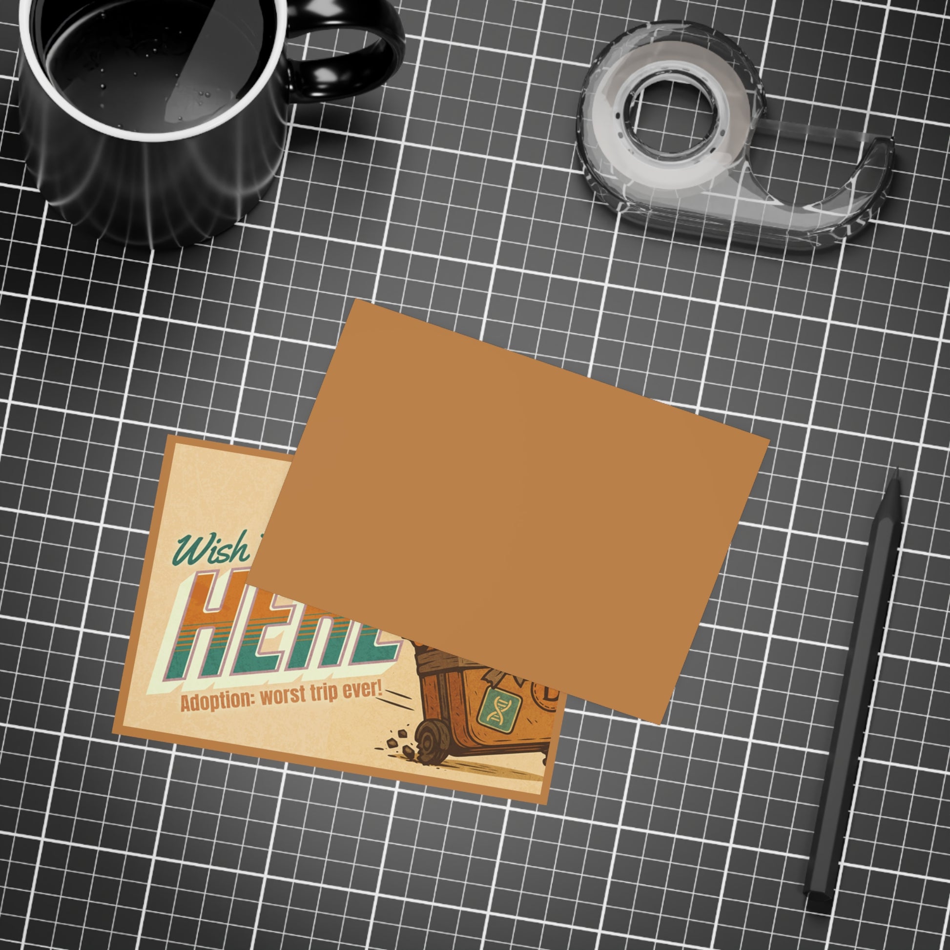 Wish You Weren’t Here – “Adoption: Worst Trip Ever!” Retro Adoptee Postcard (10-Pack)